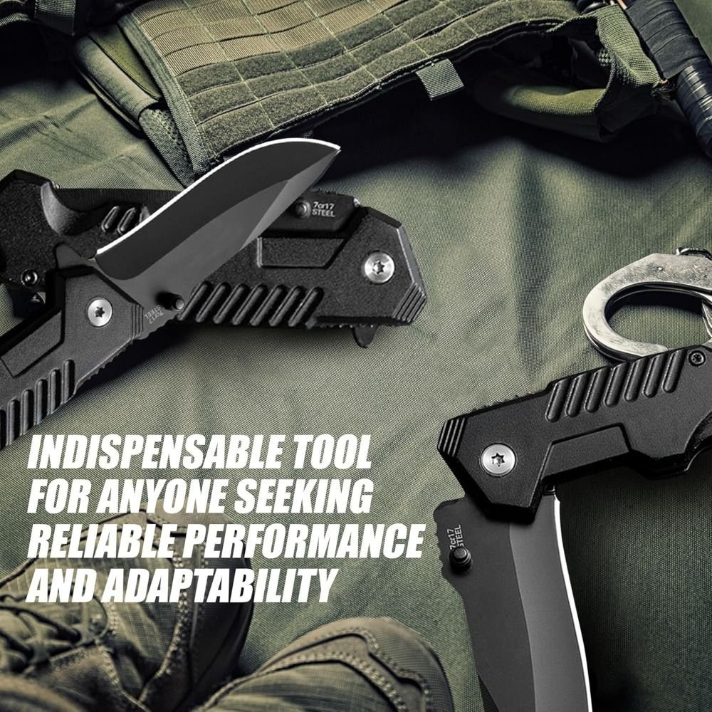 4.Built for Toughness – this outdoor folding knife is created with premium materials that can withstand the test of time. The high-quality stainless steel blade provides exceptional strength, corrosion resistance, and edge retention to handle the toughest tasks with ease.