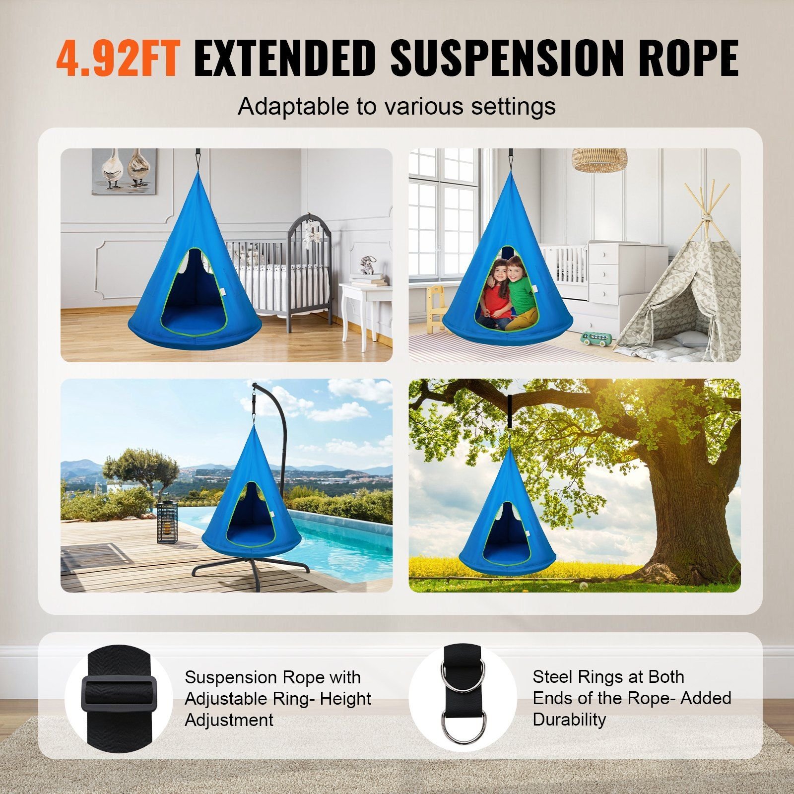 Home > VEVOR Kids Nest Swing Chair, Hanging Hammock Chair with Adjustable Rope, Hammock Swing Chair for Kids Indoor and Outdoor Use (39" D x 52" H)