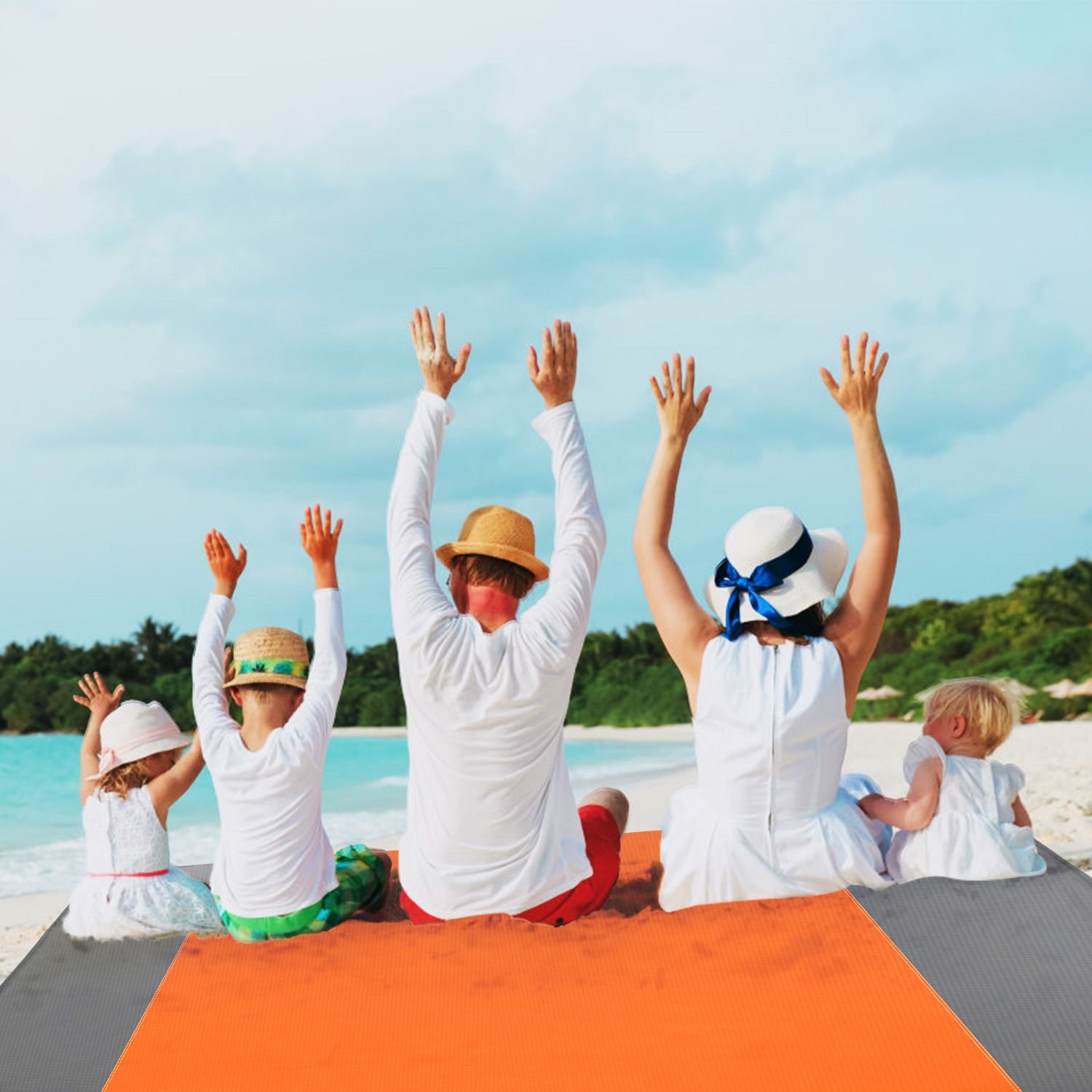 **SANDPROOF & WATER-RESISTANT*:Made of 210T polyester fiber materials,splash water-resistant. Gently shake or wipe the blanket to easily remove sand. Equip with 4 sturdy anchor stakes and 4 corner bags,which easily affix the mat to the sand and prevent the wind from blowing it around.