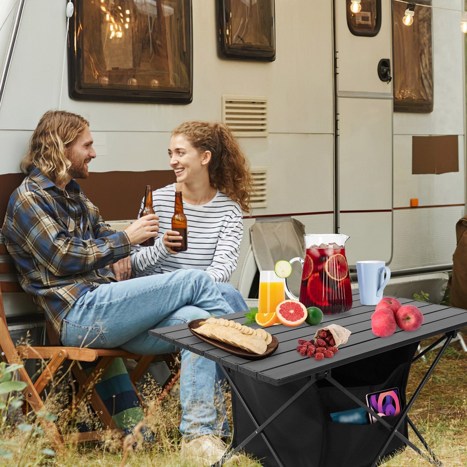 Foldable Camping Table With Storage Basket Rustproof Portable Aluminum Alloy Roll-Up Camping Table