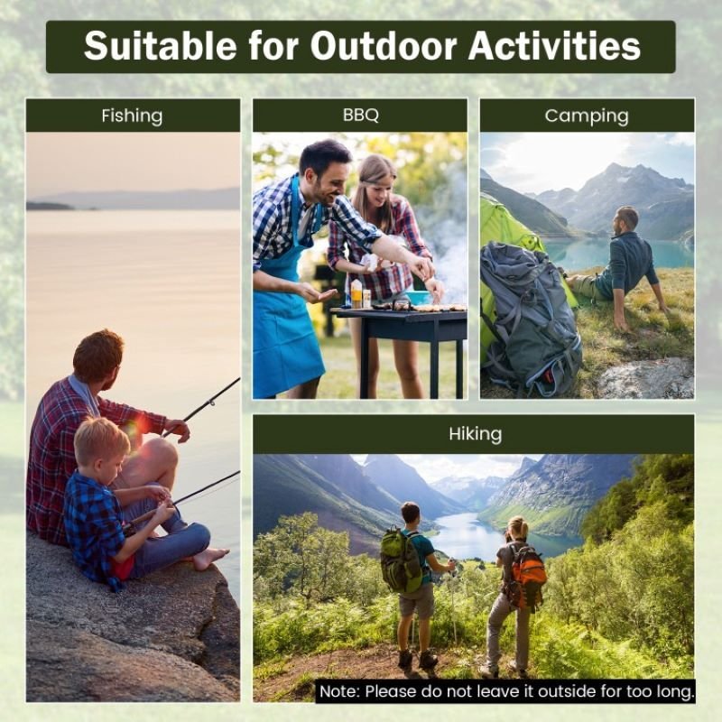You can bring it with you in the back trunk or take it on public transport for fishing, BBQ, camping, and hiking.