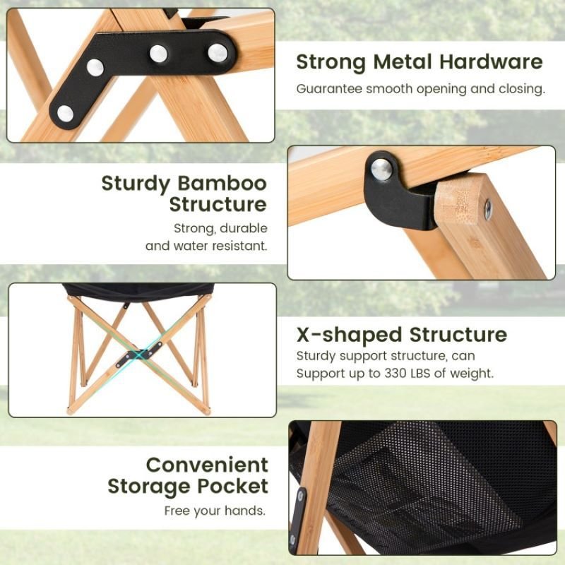 1.The strong X-shaped structure of the butterfly chair is crafted from high quality bamboo.