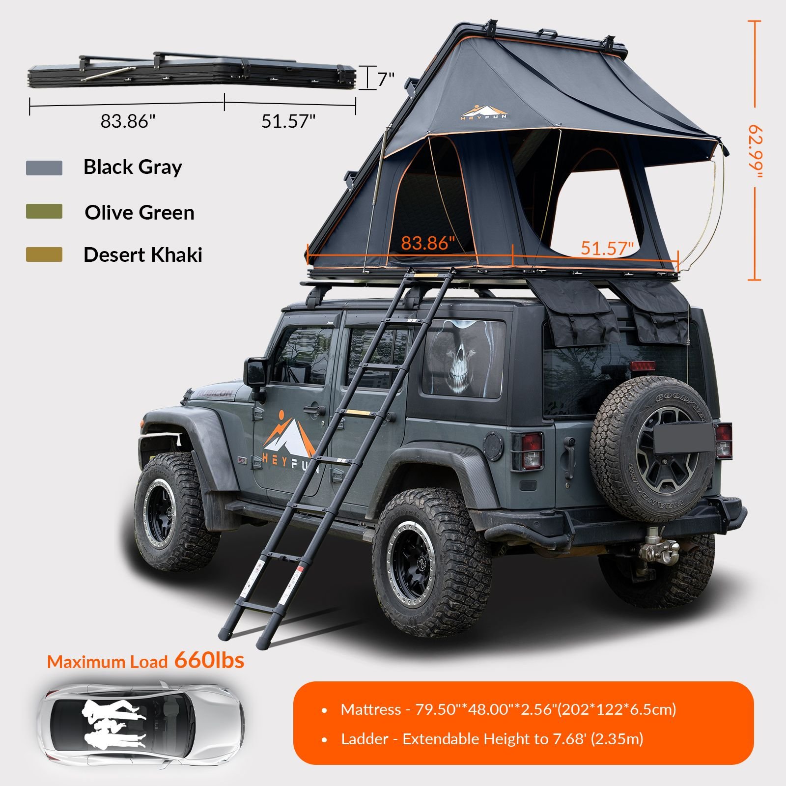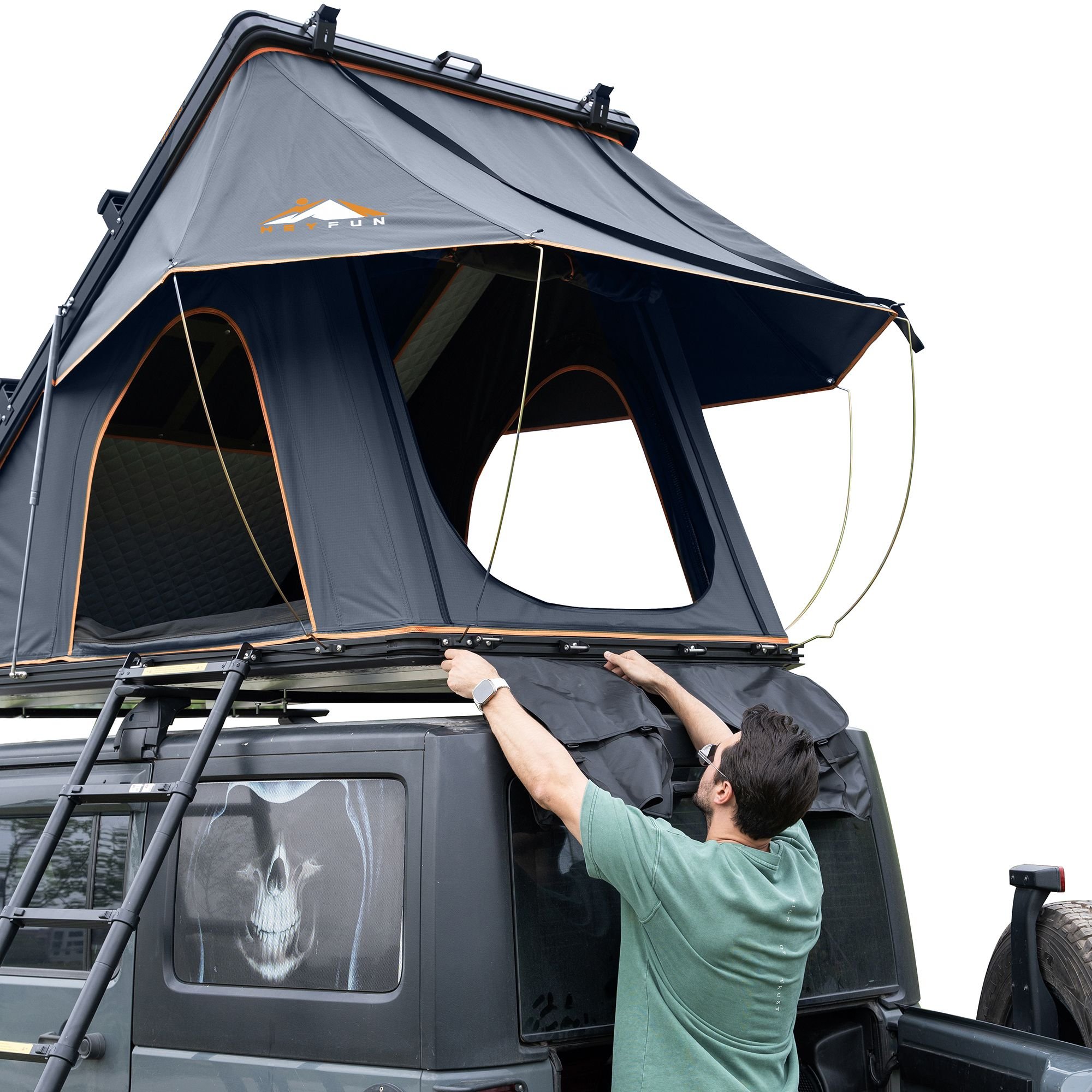 2. [Aluminum Roof Top Tent to 100% Market Excellence] - HEYFUN rooftop tents, directly from the industry-leading manufacturer, are standout options with a range of premium features including adjustable luggage racks and replaceable rain flies, best travel solution for carrying more luggage and perfect choice for camping enthusiasts and seasoned adventurers of all levels valuing quality and affordability, providing unparalleled convenience, versatility, and durability for your outdoor adventures at an unbeatable price.