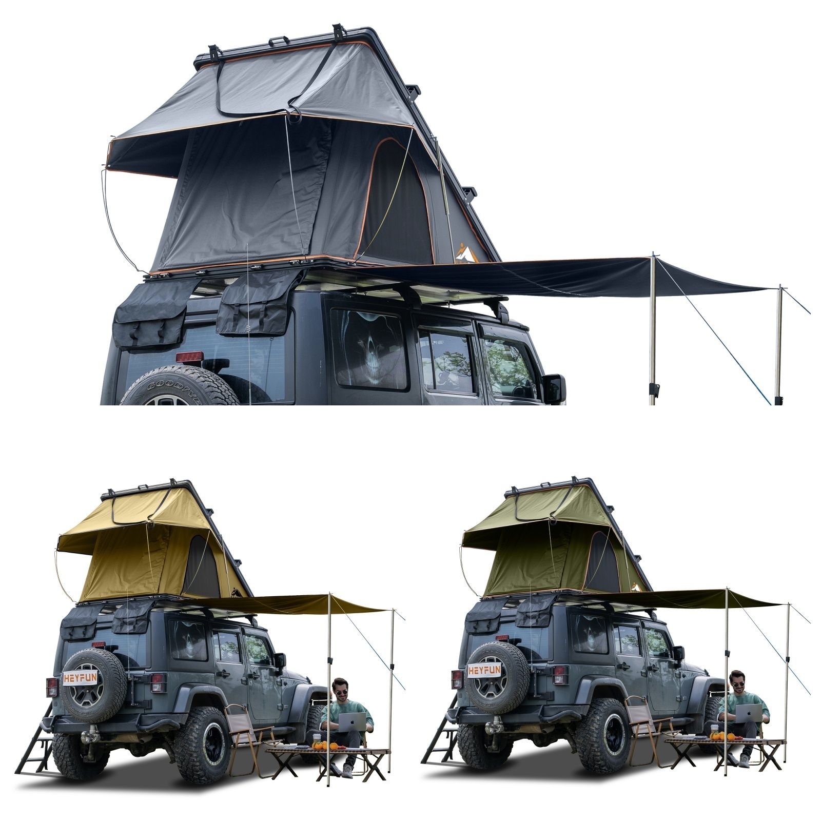 2. [Upgraded Roof Top Tent to 100% Market Excellence] - HEYFUN rooftop tents are standout options with premium features including extra attachable side awning, air conditioner outlet with detachable bracket, adjustable luggage racks and replaceable rain flies, best travel solution for carrying more luggage and perfect choice for camping enthusiasts and seasoned adventurers of all levels valuing quality and affordability.