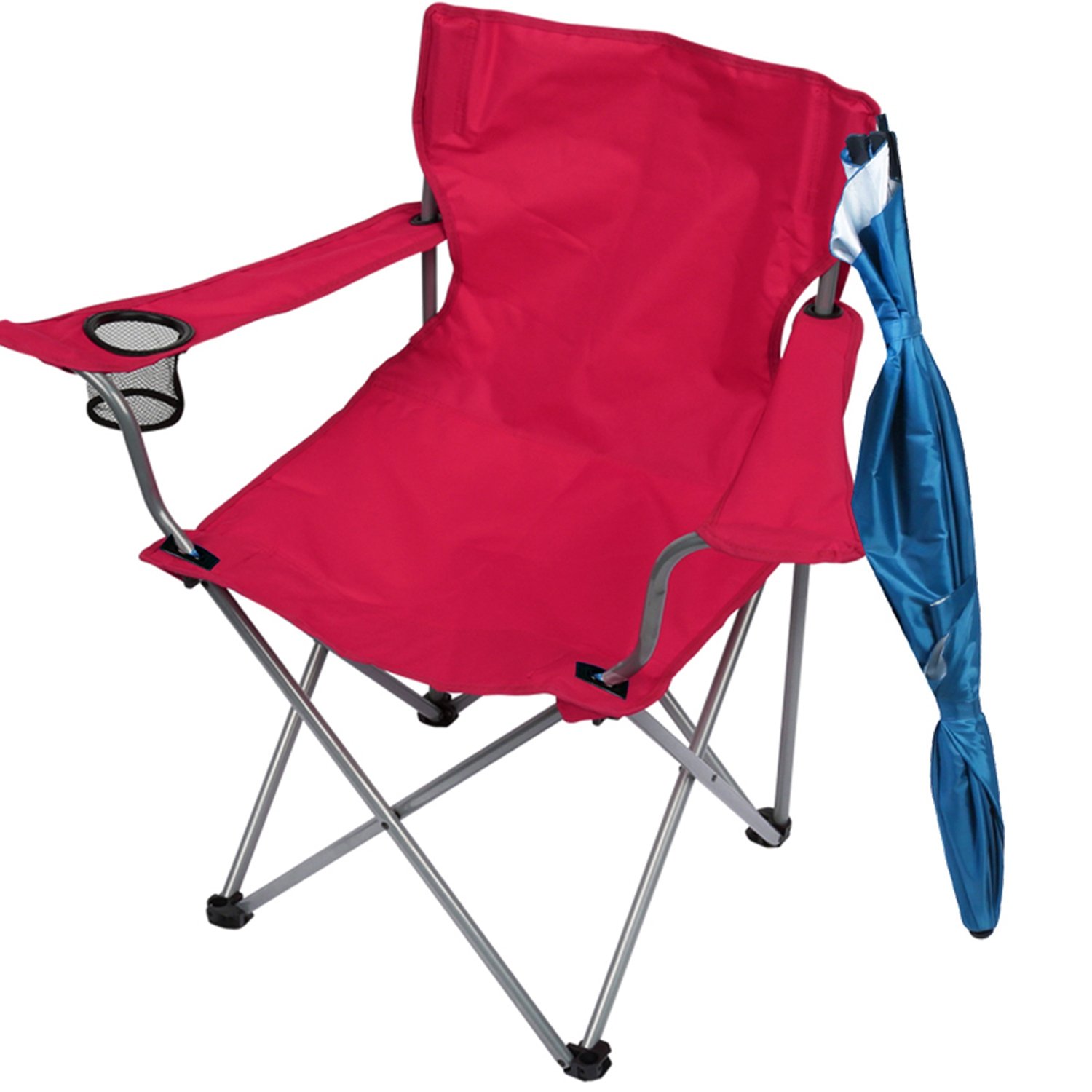 Come with an umbrella on the top, our foldable canopy chair is suitable for you to enjoy the shade and breeze at park, beach, pool, backyard, camp site or other outdoor places. Silver-coated Oxford fabric prevents strong UV and provides you with cool shade in a hot summer day. The heavy duty steel greatly improves its durability and reliability. This chair is particularly designed into foldable style, easy to store and carry. Set up quickly, can be opened and folded within seconds and packs easily back into its carry bag for storage or travel. Mesh cup holder keeps a beverage within reach. The included carry bag offers easy transport and storage.