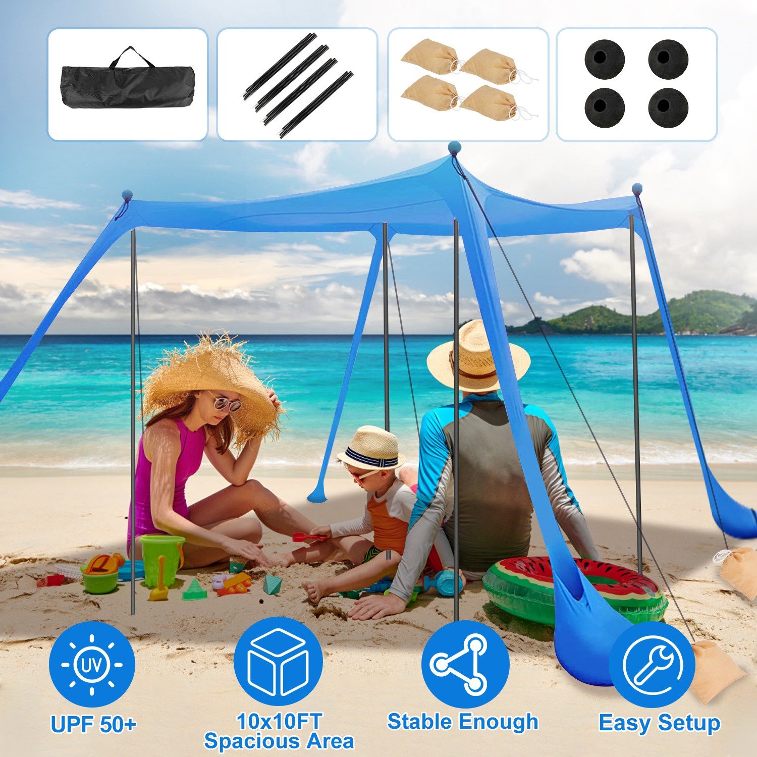 Home > Beach Canopy Tent 10x10ft Sun Shelter Family Beach Tent Outdoor Shade UPF50+ with Sandbag Foldable Poles Carry Bag for Camping Trip Fishing Picnic